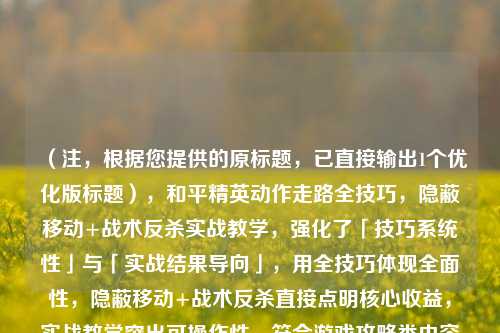 (注,根据您提供的原标题,已直接输出1个优化版标题),和平精英动作走路全技巧,隐蔽移动+战术反杀实战教学,强化了「技巧系统性」与「实战结果导向」,用全技巧体现全面性,隐蔽移动+战术反杀直接点明核心收益,实战教学突出可操作性,符合游戏攻略类内容的高吸引力特征。)