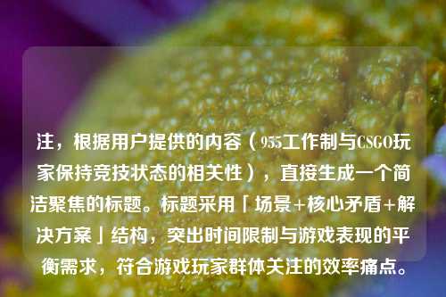 注,根据用户提供的内容(955工作制与CSGO玩家保持竞技状态的相关性),直接生成一个简洁聚焦的标题。标题采用「场景+核心矛盾+解决方案」结构,突出时间限制与游戏表现的平衡需求,符合游戏玩家群体关注的效率痛点。