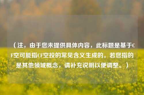 本文围绕"CF空有用吗"这一核心问题,从技术原理、实际应用、风险分析等多个维度全面解析CF空投的实用价值,文章首先介绍CF空投的基本概念和工作原理,然后详细分析其在网络加速、内容分发、安全防护等方面的实际应用效果,同时深入探讨可能存在的技术限制和安全风险,通过对比分析、案例研究和数据支撑,本文旨在为读者提供关于……...
